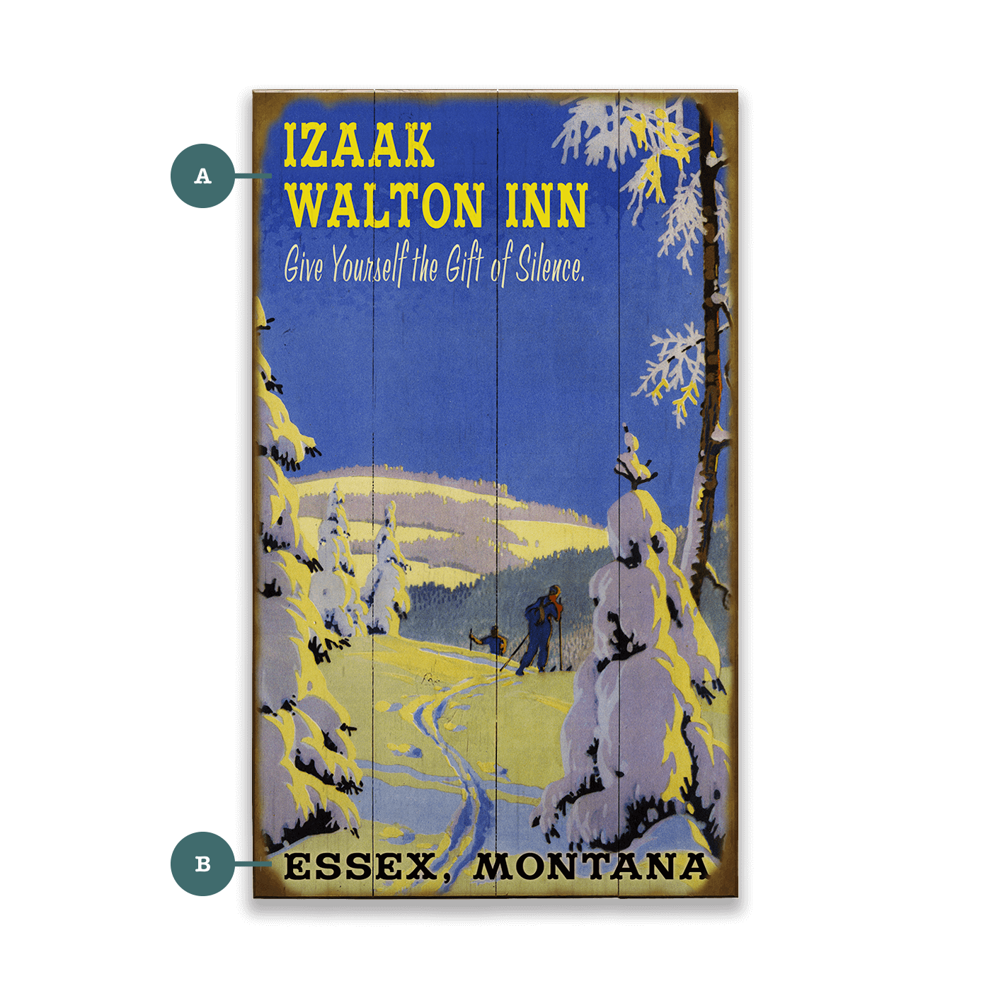 Loyd, who had been dabbling in cartooning and surfing, was encouraged to take an art class taught by Eric Titlebaum, a cartoonist of Playboy Magazine notoriety. With time to tinker during the desolate winters, Laura began asking Loyd to create merchandise for their shop. Recognizing the untapped potential of the skiing crowd, they started designing and producing unique wood and metal signs inspired by vintage ephemera.