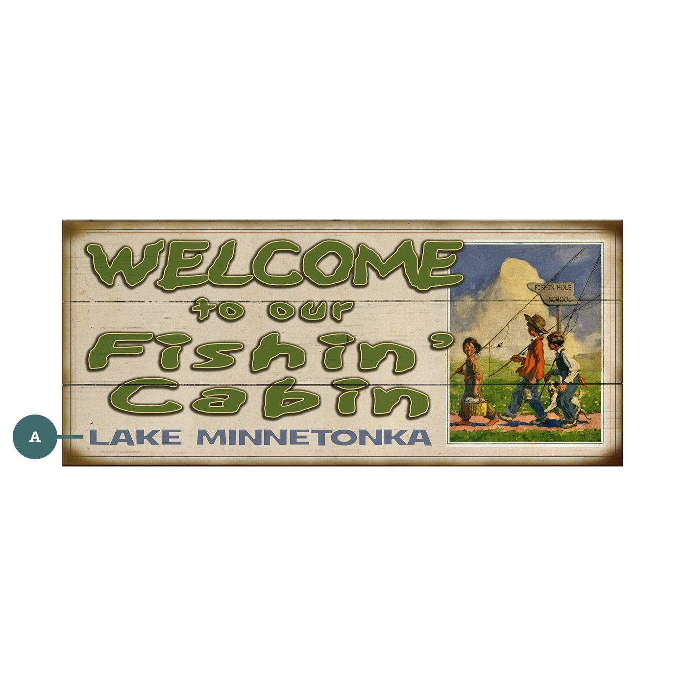 Add a rustic touch to your cabin decor with this charming sign featuring a nostalgic fishing scene. The vintage-inspired design captures the essence of leisurely days spent by the water, making it a perfect addition to any cabin or lakeside retreat. The warm, inviting message combined with the classic artwork creates a welcoming atmosphere for guests.