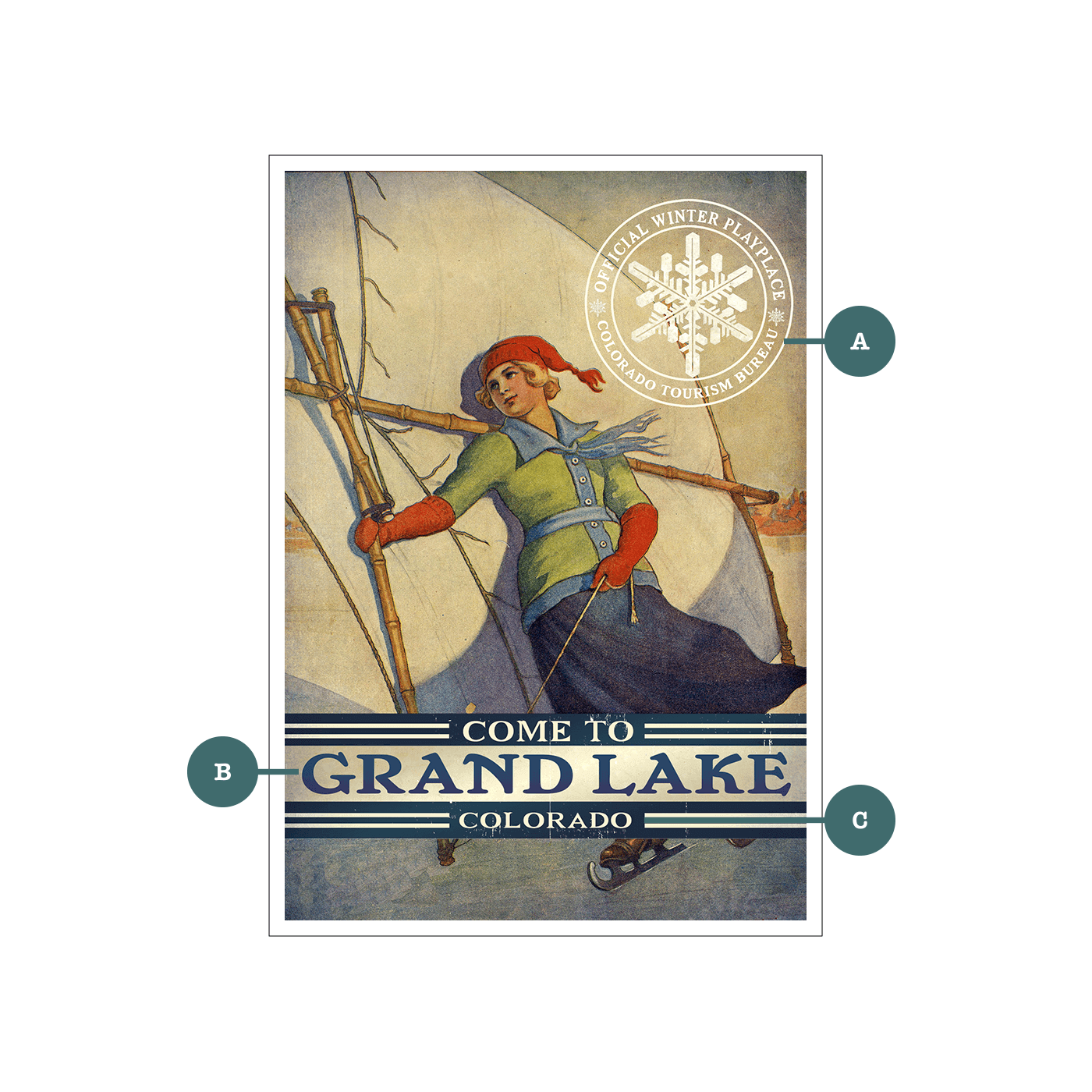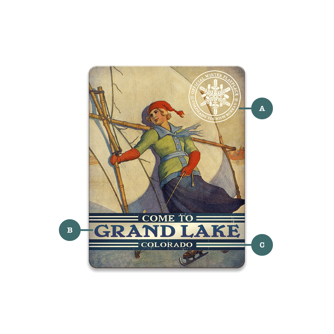 Catch the winter wind with this vintage-style skate sailing sign, where a stylish skater leans into the breeze beneath a crisp sail and frosty sky. Dressed in retro winter gear, she grips the wooden rigging of a handheld sail, capturing the thrill and balance of this rare winter pastime. Weathered edges and an official snowflake seal enhance the nostalgia, making it a striking addition to ski lodges, lake cabins, or any space that celebrates the adventurous spirit of snow-season sports.