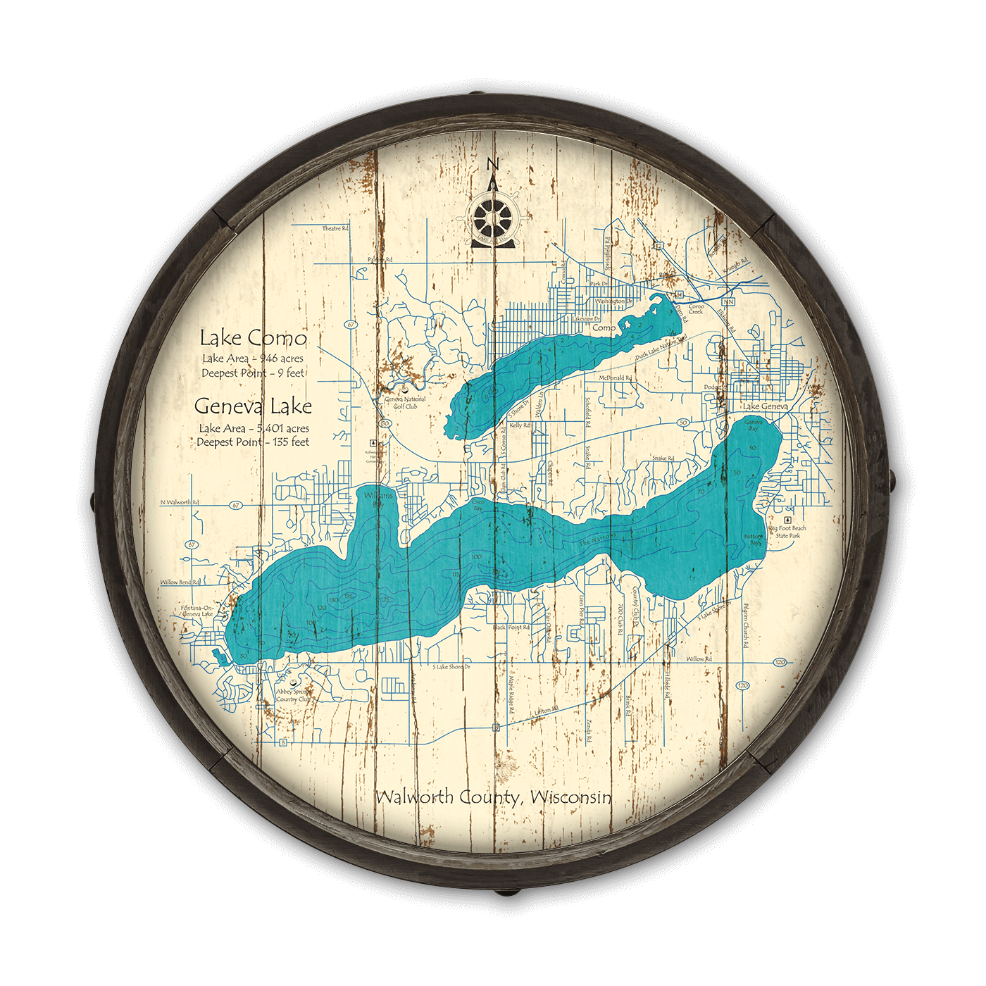 Lake Como and Lake Geneva, Wisconsin on a Barrel End