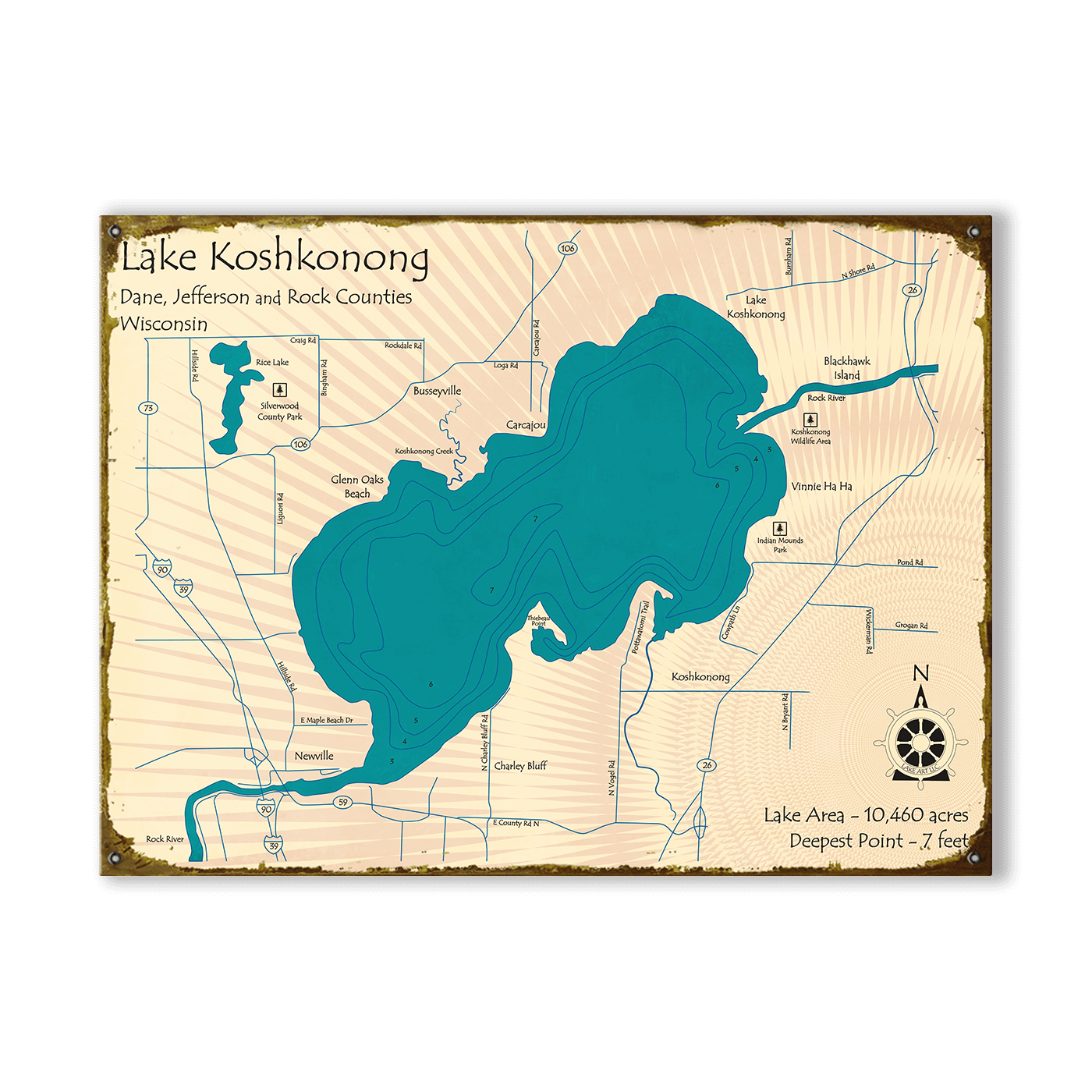 Lake Koshkonong, Wisconsin - Wood & Metal Wall Art