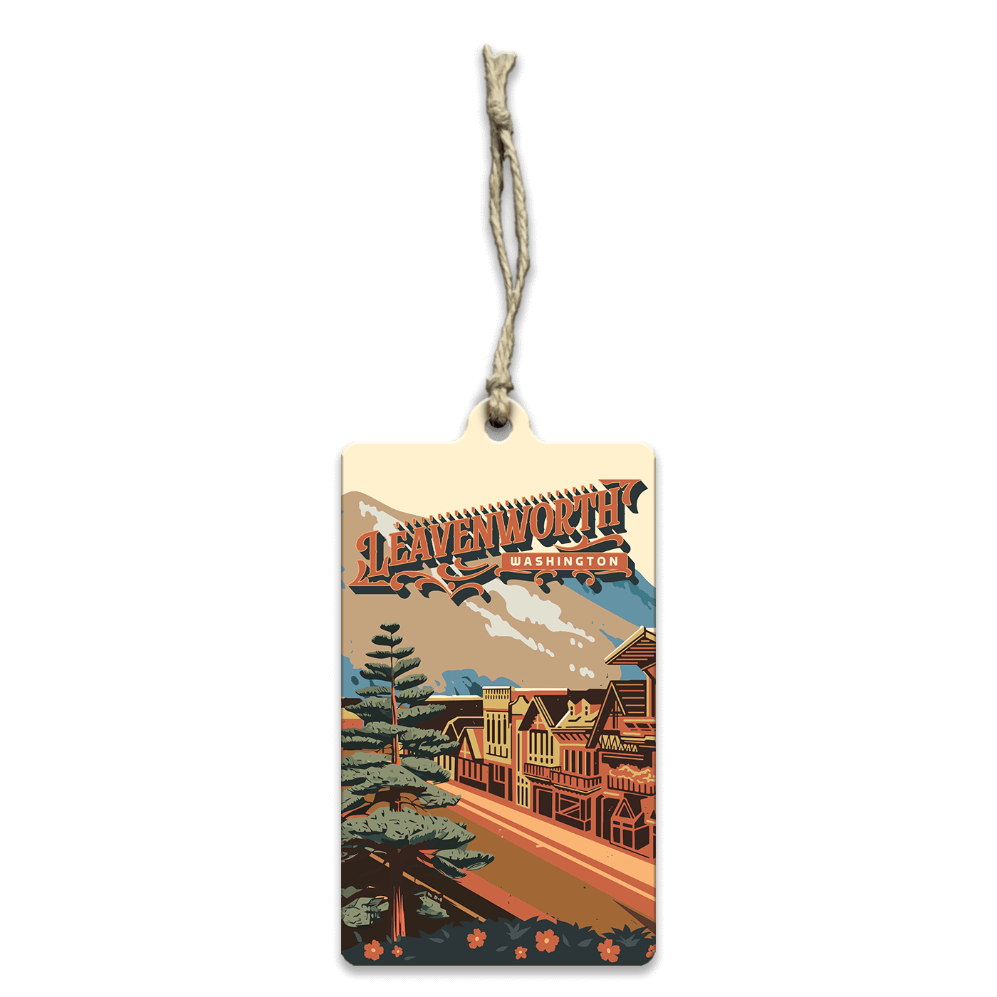 This artwork captures the charm of Leavenworth, Washington, set against a backdrop of alpine peaks and mountain scenery. Illustrated in a bold, vintage-inspired style, it highlights the town’s distinctive architecture, tree-lined streets, and Bavarian character. Perfect for cabins, lodges, and mountain-inspired spaces, this piece celebrates the unique blend of Old World charm and Pacific Northwest adventure that makes Leavenworth a beloved destination.