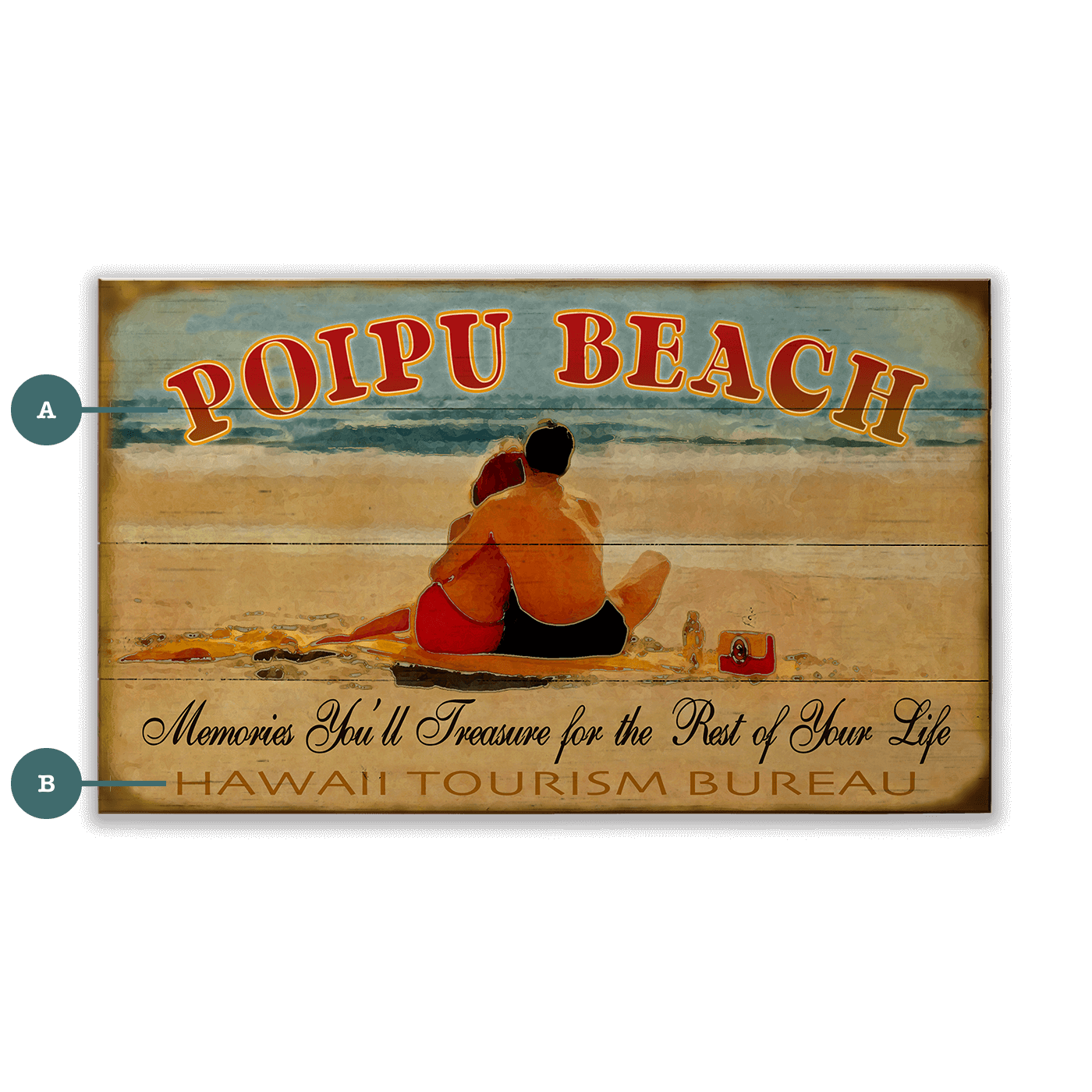 Enjoy complimentary personalization for this piece, meticulously handcrafted by our graphic design team. Specify your desired text for points A and B. To ensure perfection in your custom piece, please verify your text carefully. Missing personalization information will revert to our default design as shown. To remove all text from a field, type "Remove" in that field.