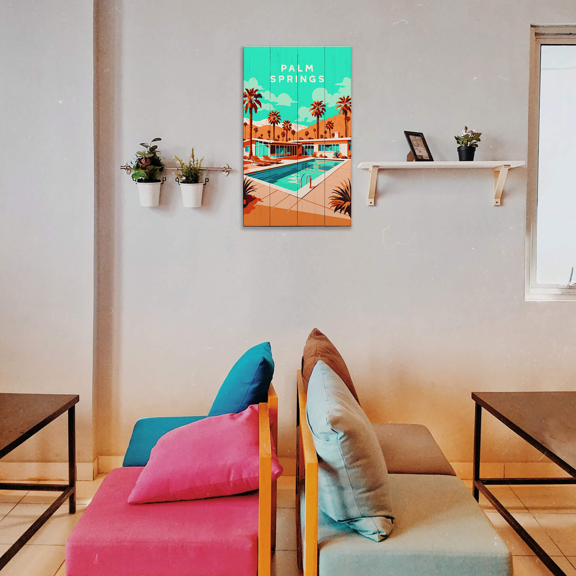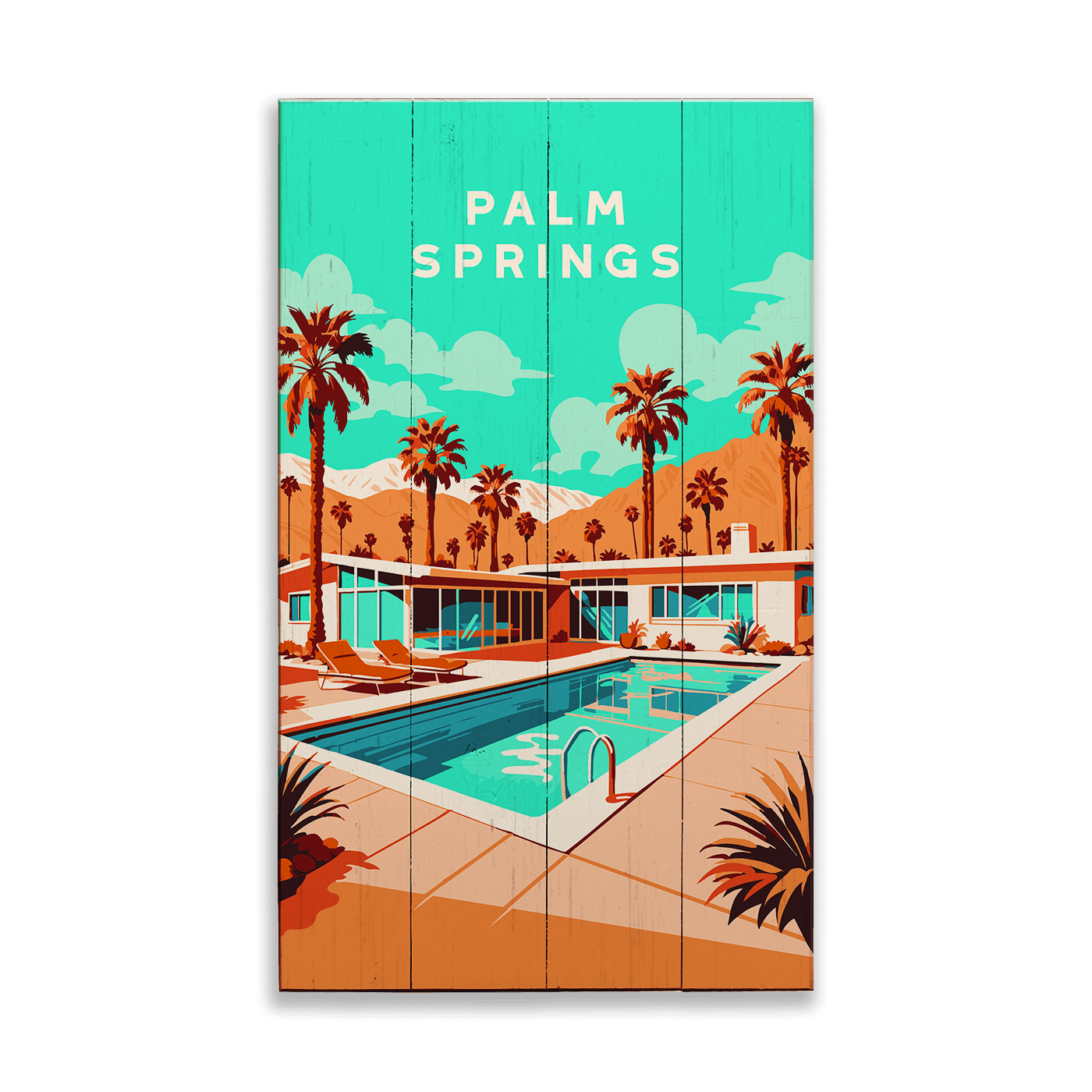 Palm Springs Pool Scene: Smooth Finish - Wood & Metal Wall Art