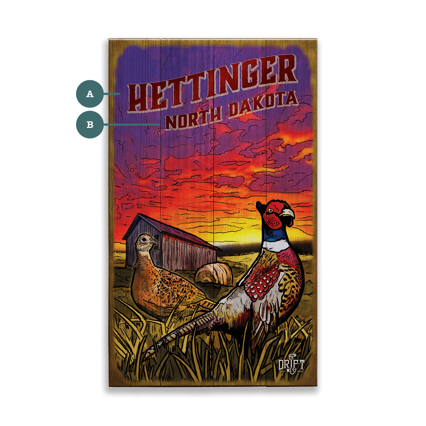 Enjoy complimentary personalization for this piece, meticulously handcrafted by our graphic design team. Specify your desired text for points A and B. To ensure perfection in your custom piece, please verify your text carefully. Missing personalization information will revert to our default design as shown. To remove all text from a field, type "Remove" in that field.