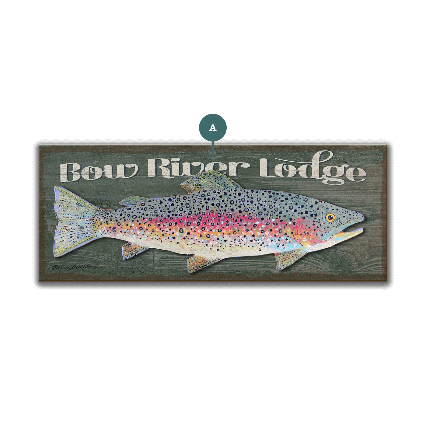 Introduce a burst of color to your walls with this vibrant Rainbow Trout artwork, meticulously printed on aluminum and then mounted onto a blue green wooden background. This piece captures the enchanting beauty of the Rainbow Trout, highlighted by its speckled pattern and an array of dazzling colors that make it pop against the rustic backdrop.