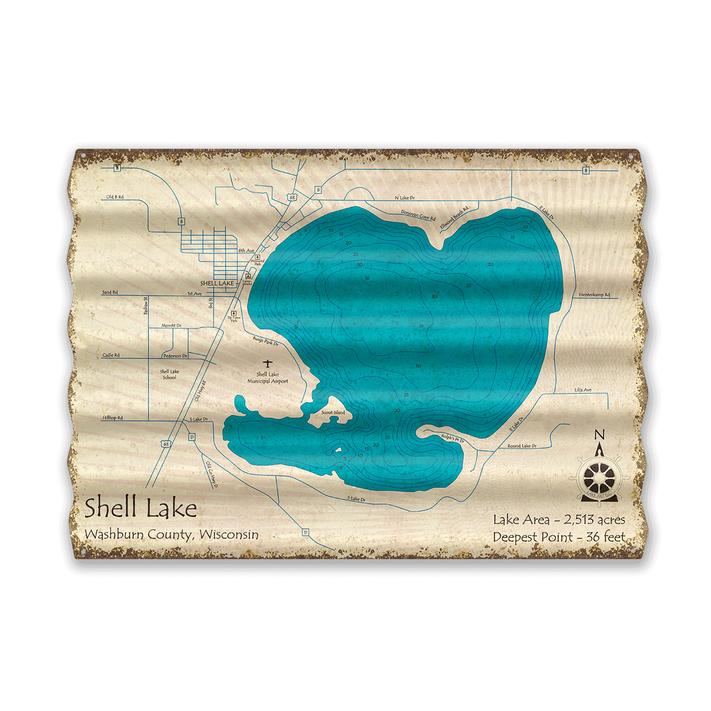 Shell Lake, Wisconsin - Corrugated Metal Wall Art