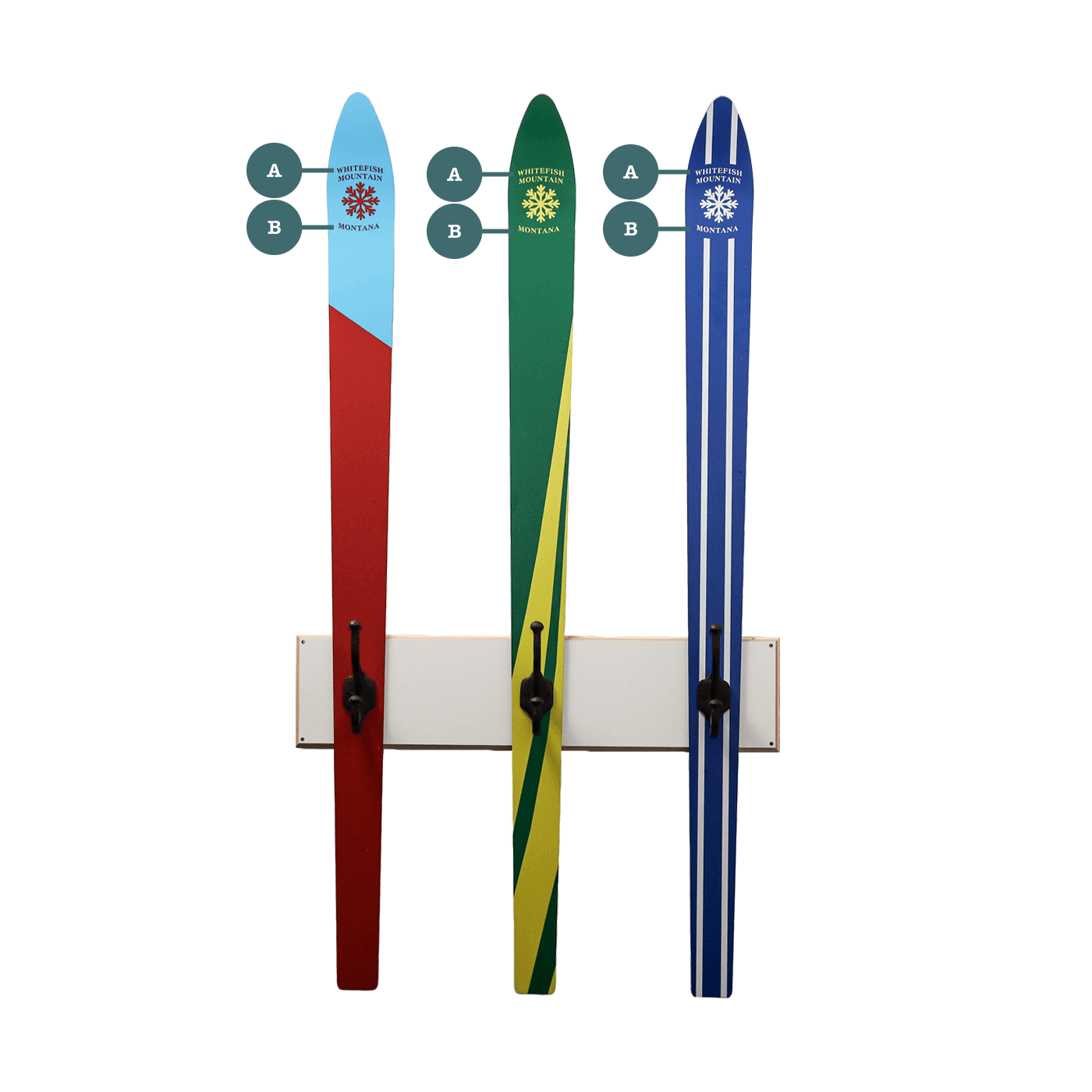 Add a touch of alpine charm to your entryway with this ski-themed coat rack. Crafted from a sturdy base adorned with vibrantly colored simulated skis, this unique piece brings the spirit of the mountains into your home. Each ski features a classic winter design, complete with metal hooks for hanging coats, scarves, and hats. Perfect for ski enthusiasts or anyone looking to infuse a bit of winter wonderland flair into their decor, this coat rack is both functional and stylish, making it a great addition to any mudroom, hallway, or cabin.
