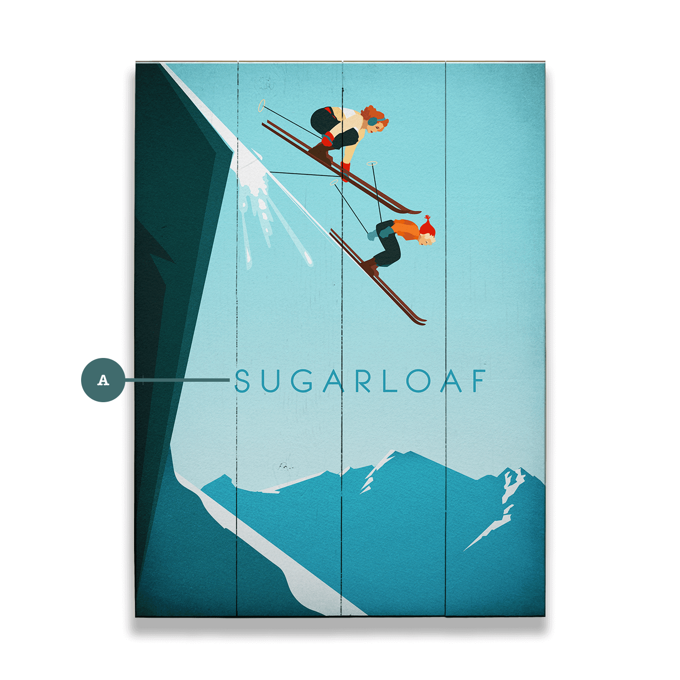 This eye-catching ski artwork captures a pulse-pounding alpine moment as two skiers launch off a sheer cliffside, frozen mid-air in perfect form. With its crisp, stylized illustration and icy blue tones, the design evokes the adrenaline and freedom of backcountry descents and expert terrain. The towering slope and sharp angles draw the viewer into the action, while the minimalist layout keeps the focus on movement and daring. A striking piece for ski cabins, lodges, gear rooms, or any space that celebrates winter sports, it brings both modern flair and high-elevation excitement to your wall.