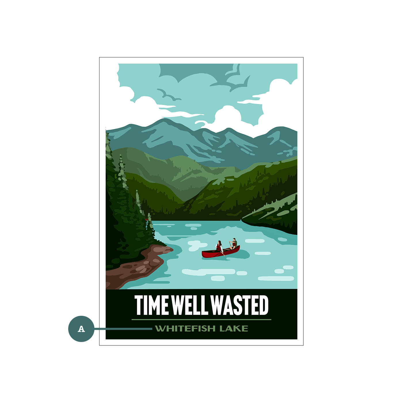 This serene lake scene captures the essence of leisurely days spent canoeing in a mountain paradise. The artwork features a vibrant color palette, with lush greenery, calm waters, and a peaceful mountain backdrop, evoking a sense of escape and tranquility. The rustic wood texture adds a touch of vintage charm, making it a perfect addition to any cabin, lake house, or nature-inspired décor. Personalization options are available to add your own custom location.