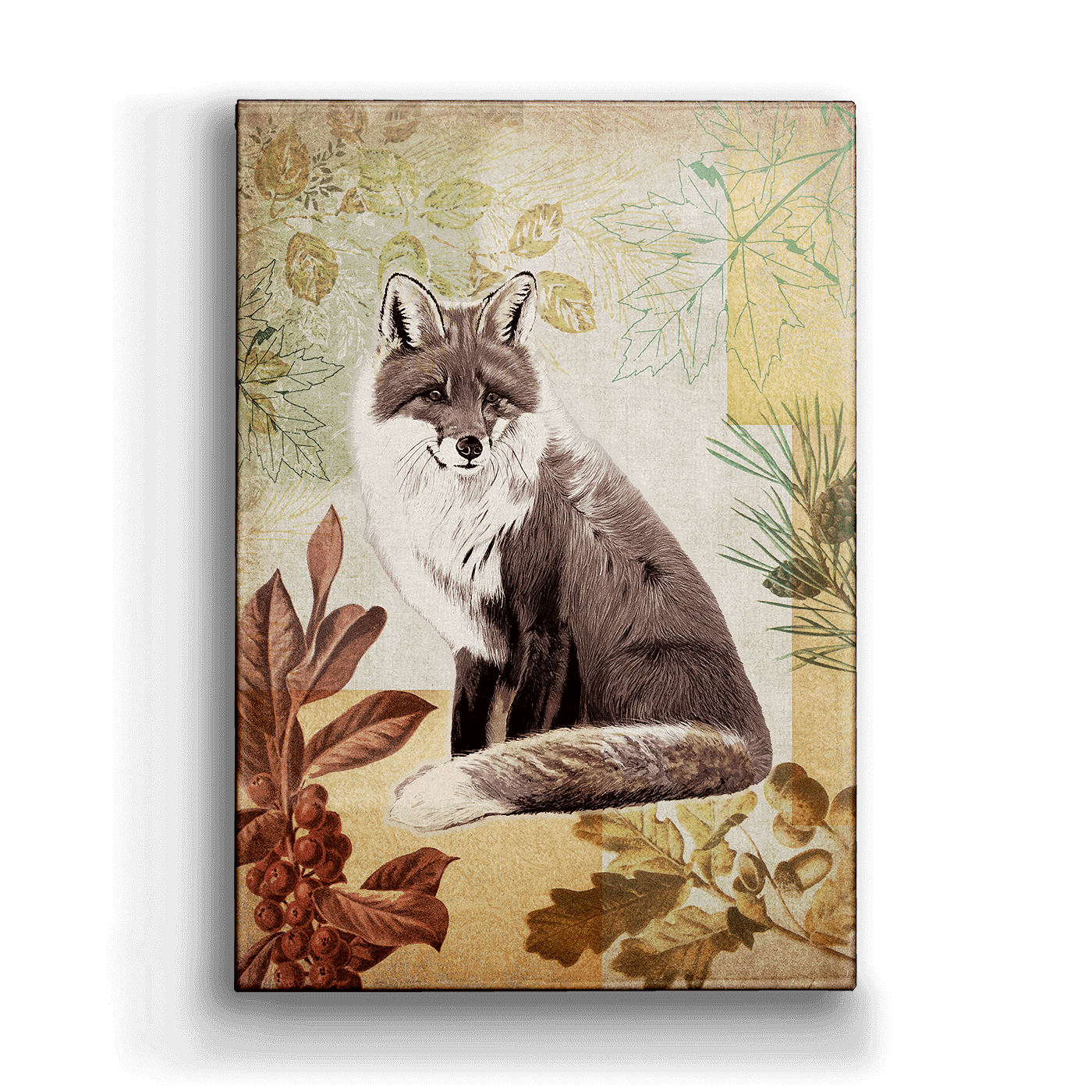 The fox, known for its cunning and adaptability, is beautifully portrayed in its woodland home in this piece. Its vivid coat stands out against the forest scenery, illustrating the harmony between the animal and its surroundings. This piece brings an enchanting allure, adding a captivating touch to your decor.